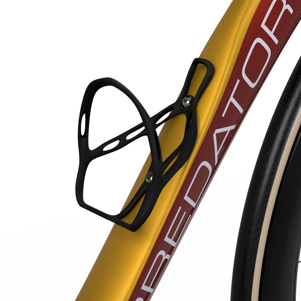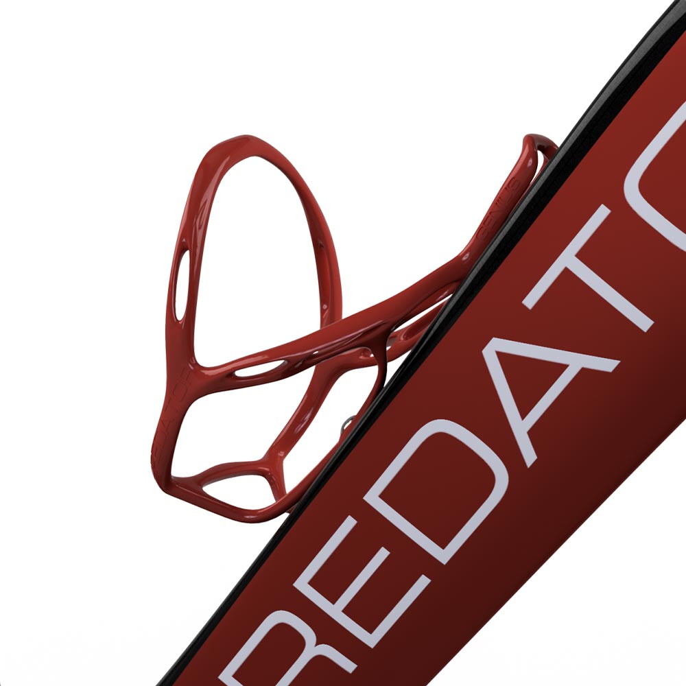 There are material science ideologies at play for this product. Predator believes our isotropically designed and simulated 3D print cages can rival the strength and weight objectives of competing carbon fiber cages. We set out to design the most dynamic and functional cage by splitting the difference between weight and durability with the benefit of a monster grip!